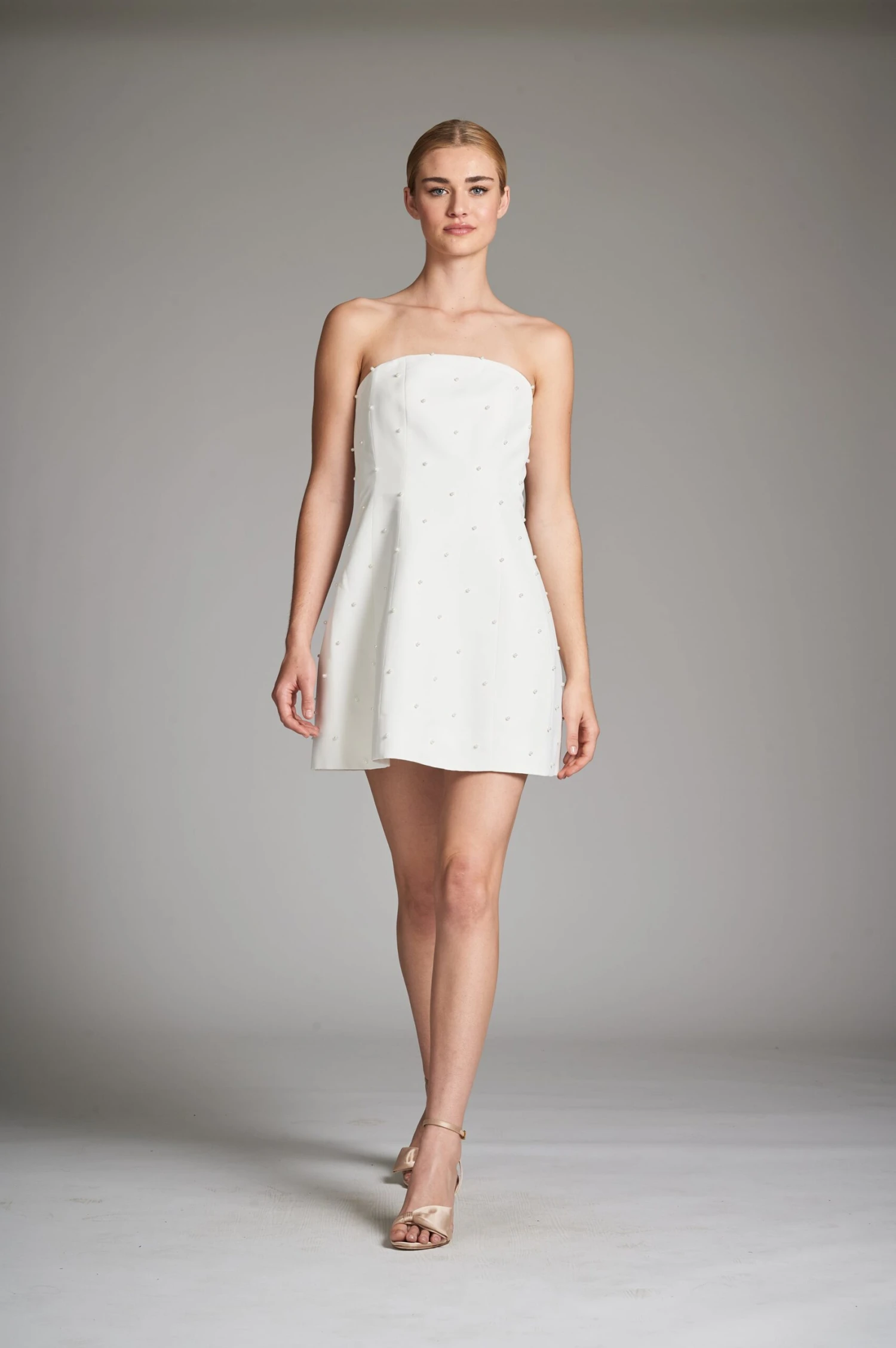 The ultimate cocktail dress, this time accented with pearl embroidery! She’s engineered to keep her perfect bell shape with boning at the bodice is what allows her to defy gravity. We spent many hours on this frock to make sure she is exactly what you see on the site.