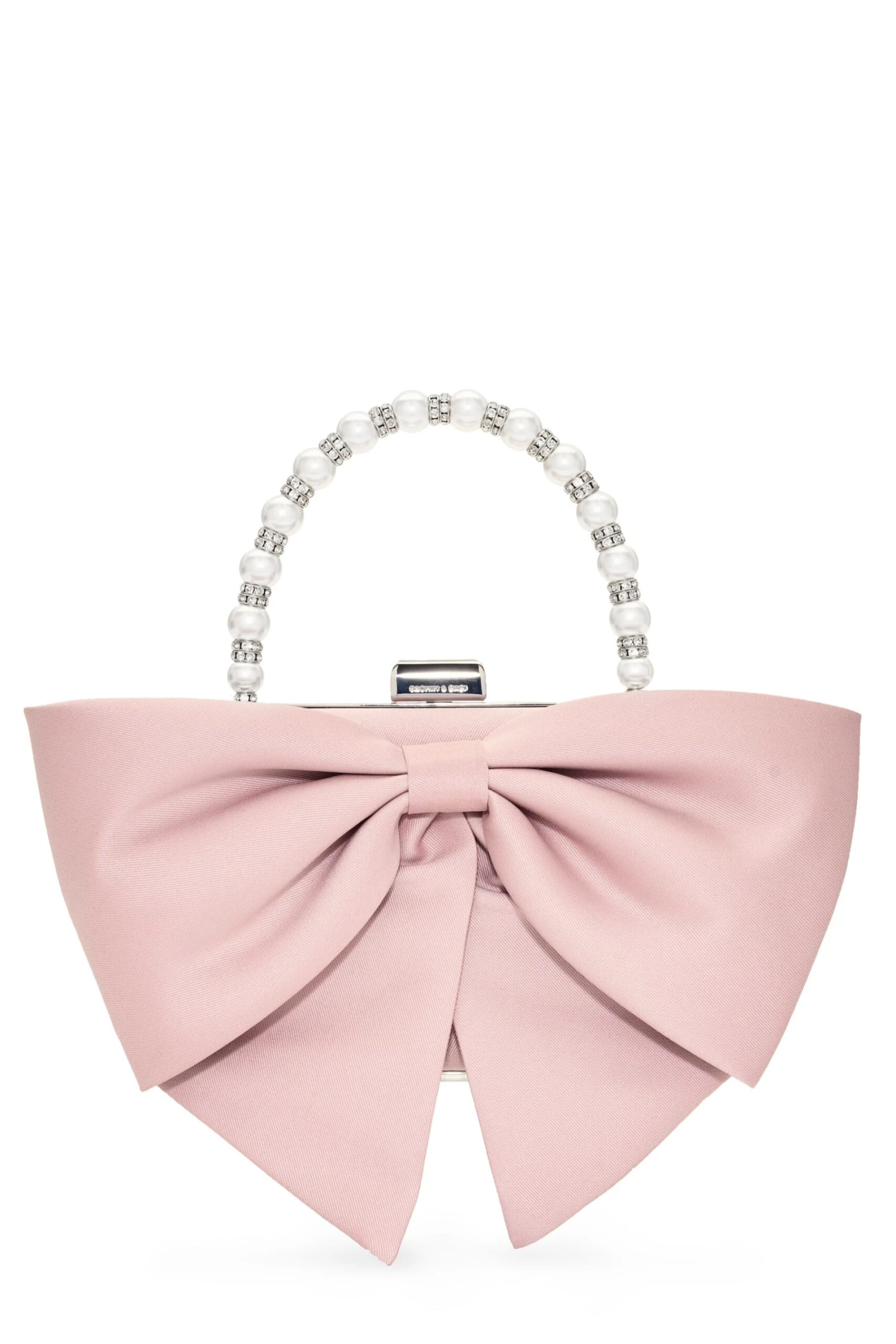 Introducing the Bubbly Bag, inspired by exactly what you would imagine. This fully-framed evening bag features a silver tone finish and an interior pocket. Its rich Mikado fabrication lends itself to luxury, while the pearl and crystal embellished top handle speaks to its timeless sophistication. The perfect companion to any fête.