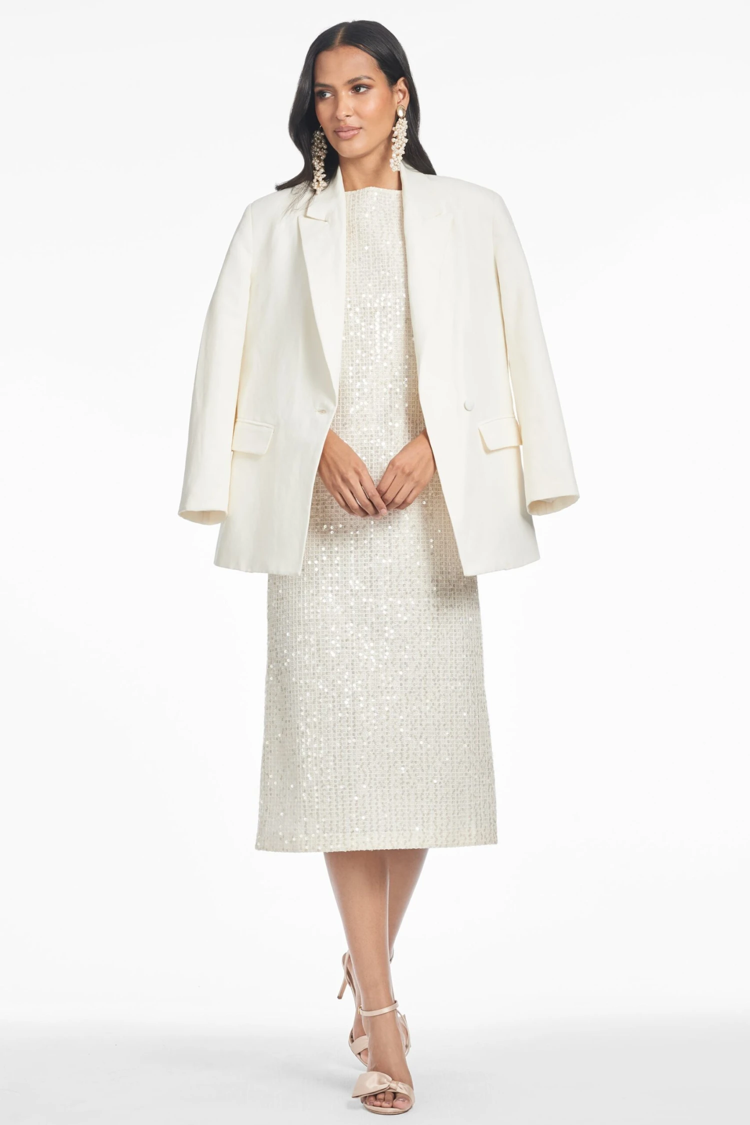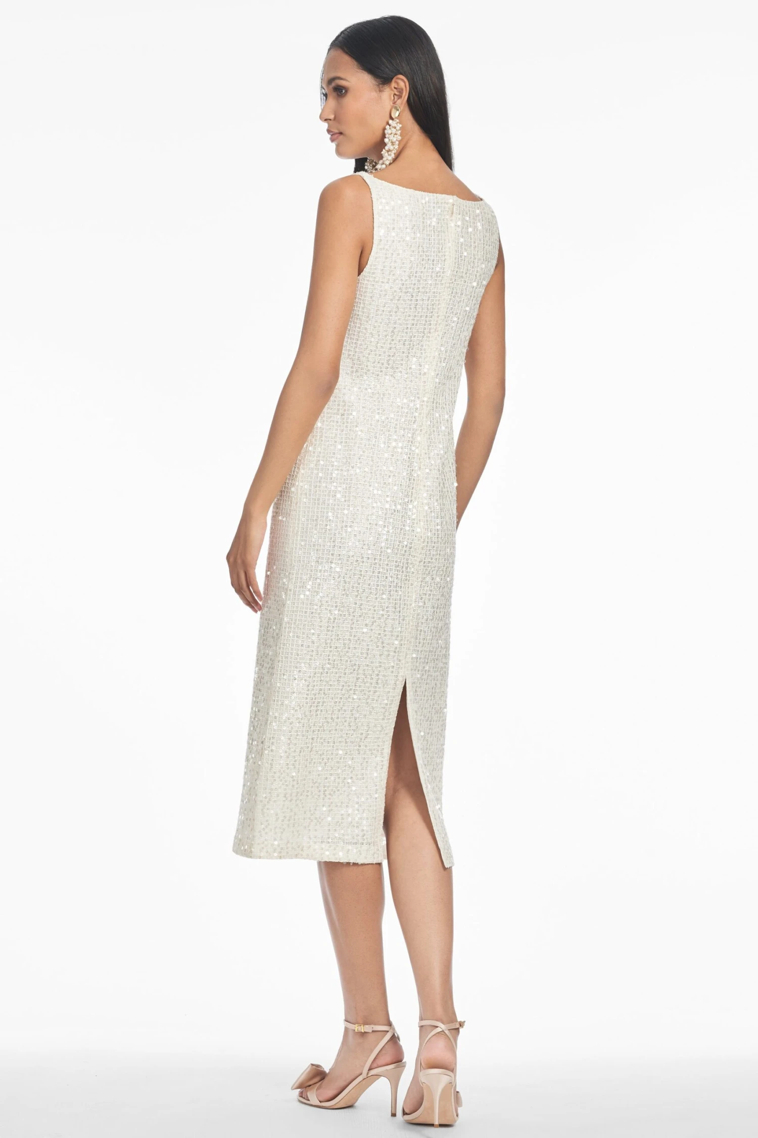 Sometimes the simplest of them all garners the most attention. This classic sheath dress is reimagined in an all-over sequin fabric that feels and looks like a sparkling linen tweed. A timeless dress, perfect for nearly any occasion.