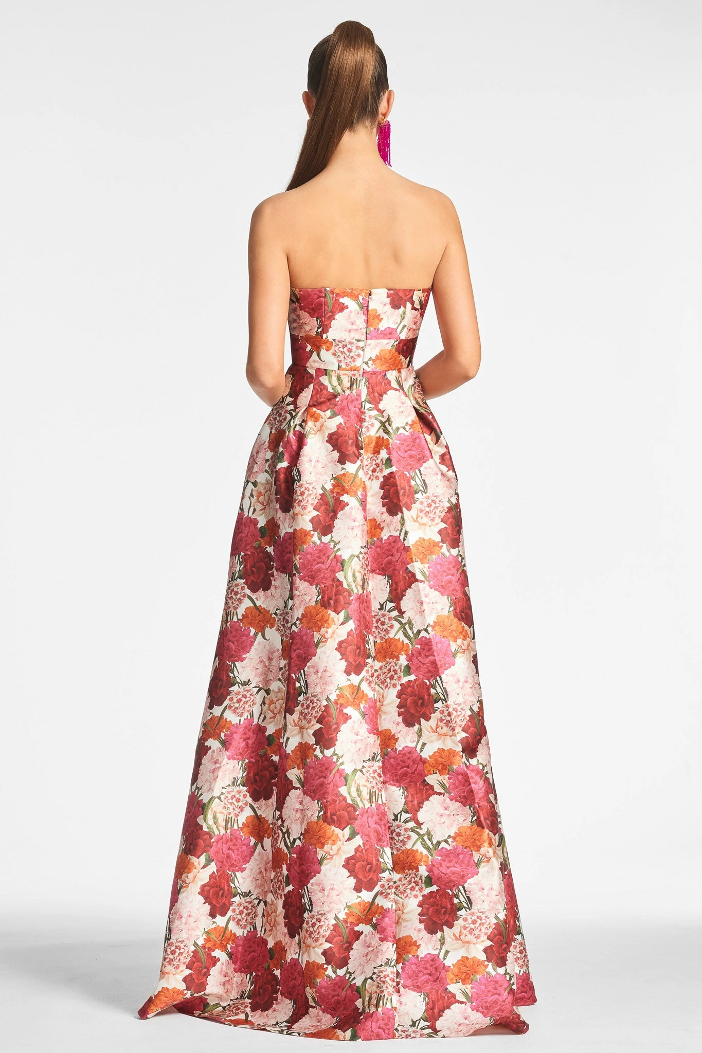 The Giovanna in our Molti Fiore, reimagines the classic ball gown silhouette. With a delicate sweetheart neckline, banded waist, and box pleats, this strapless formal dress exudes romance and elegance. Perfect for your next special occasion.