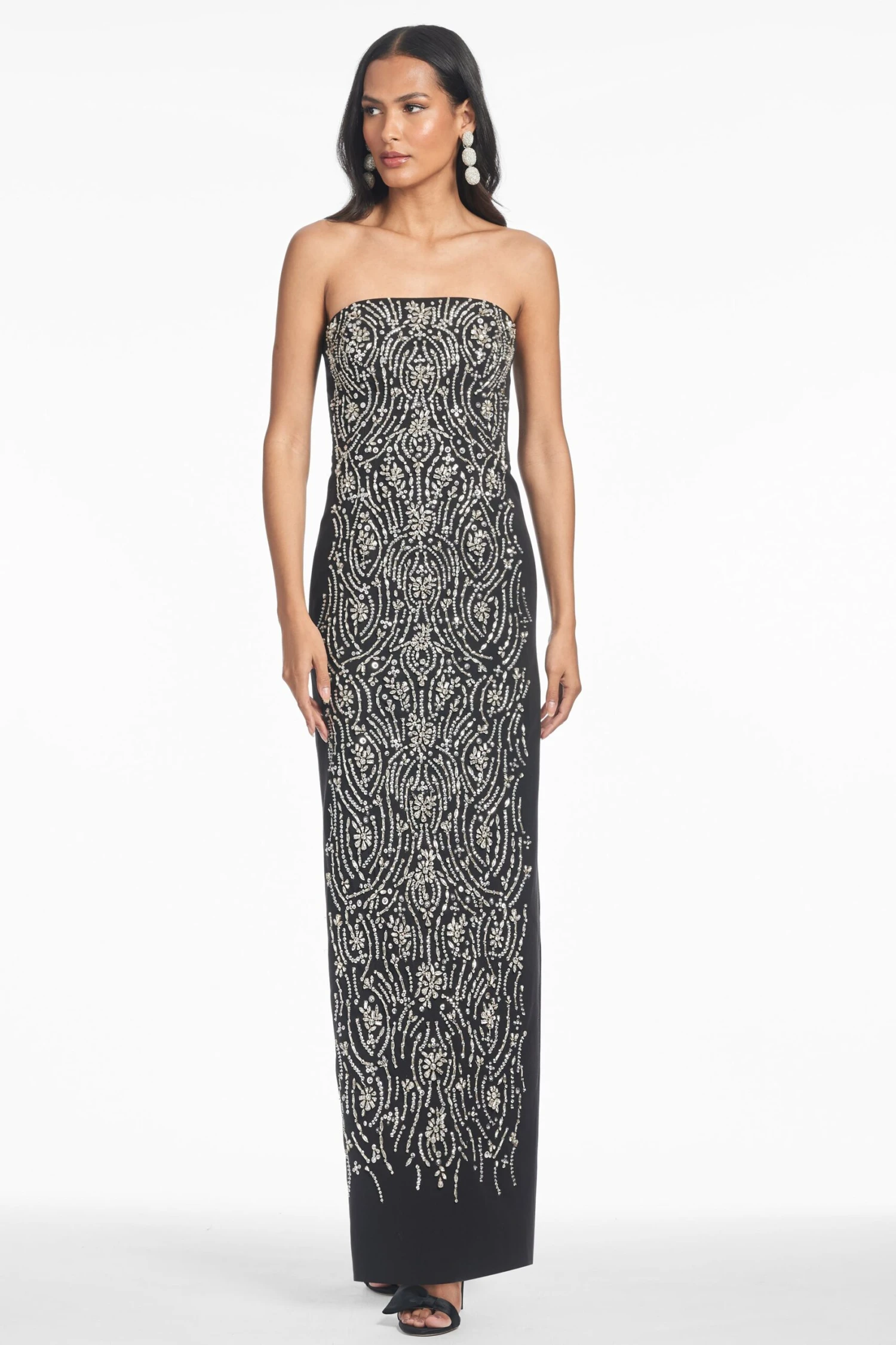 We’re known for our sparkle, and the Lucille Gown makes a good case for why. This strapless stunner is for the girl looking to shine with all-over, intricate embellishment throughout the front. The entire front panel of the dress is hand embellished and all artfully embroidered by our 3rd generation artisans at our family owned atelier in Mumbai