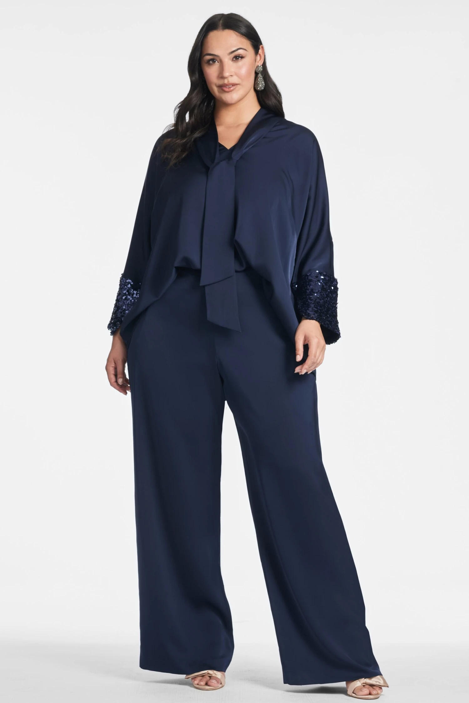 The Reid Top is a stylish, easy-to-wear, relaxed fit statement piece. Perfect for any time of day, from a day at the office to a night out, with a self tie at the neckline and sequin detailing on the sleeve to add that extra shine, Reid is a standout. Pair back to the matching Alli pants or with your favorite jeans or leather.