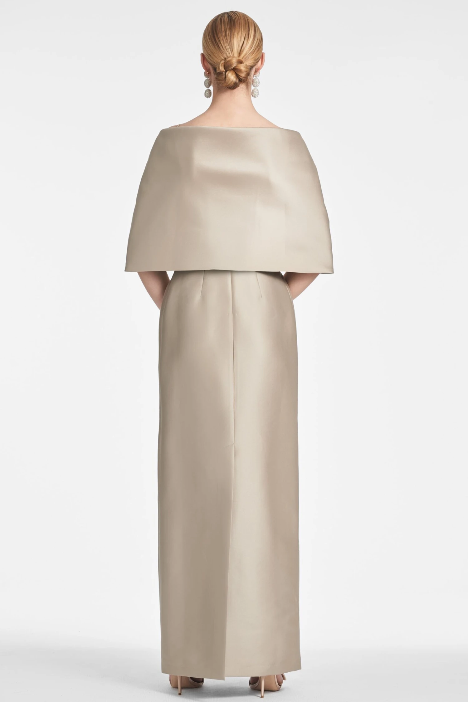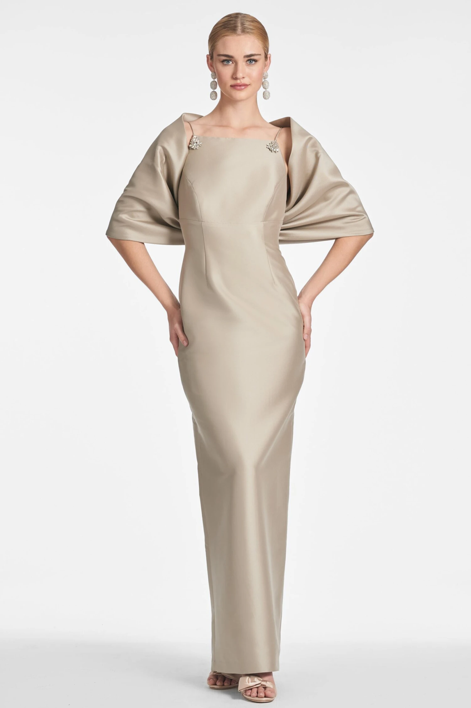Introducing our Hug Shawl in pewter. Whether you’re looking for more modesty or for an added element to your look, this is the hero piece of the season. She’s made of rich Mikado and fits around you like a warm hug.